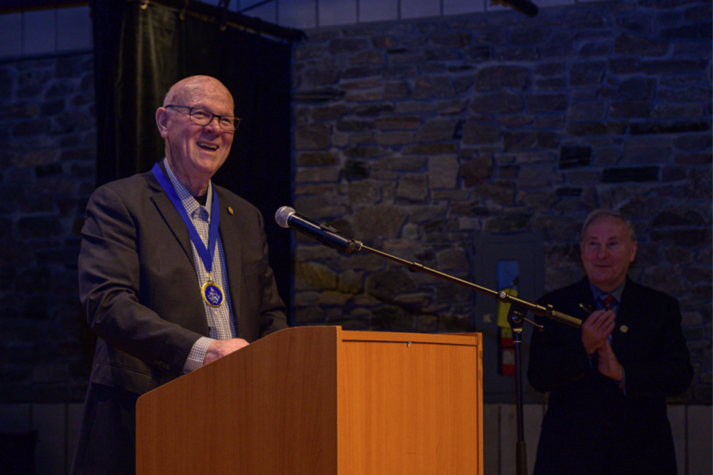 With over a hundred people in attendance, the January 4th Mayor’s Annual New Year’s Levee paid tribute to long time Parry Sound High School (PSHS) music teacher Jim Ferris by awarding him the 2025 Order of Parry Sound.